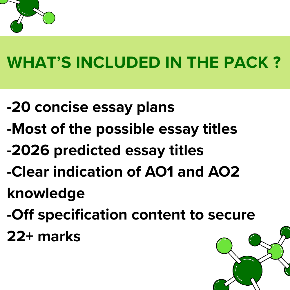 This Biology 25 Marker Essay Pack is designed to bridge that gap, helping you turn your knowledge into high-level, exam-ready essays that can achieve 22+ marks.